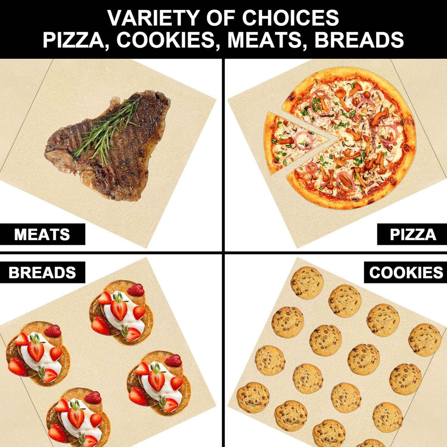• Package contains two pizza stones (one T-shaped and one square). Square pizza stone measures: 16.7'' x 16.7''; T-shaped pizza stone measures: 16.7'' x 7.9''; Material: All natural Cordierite. Solid piece that cooks evenly. Can be used in home kitchens, family gatherings and parties. Can be used to bake bread, pizza, pies, cookies, and pastries, etc.
