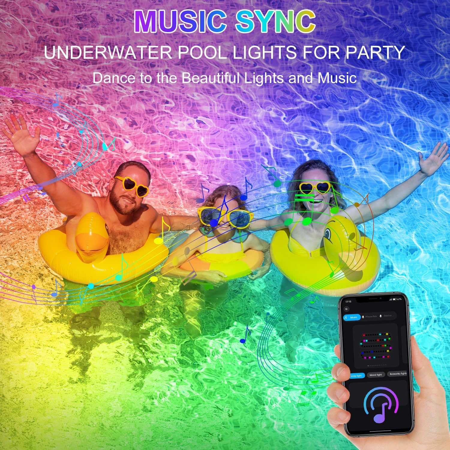 • 📱Bluetooth APP Control📱 Seamlessly control the color changing LED pond light via our Bluetooth APP, unlocking access to a staggering 16 million colors and diverse scene modes. Our submersible pond light and its upgraded app that allows you to control the lighting effect of each lamp bead, transform serene evening into vivid spectacle or festive celebrations with dynamic multicolor displays.
