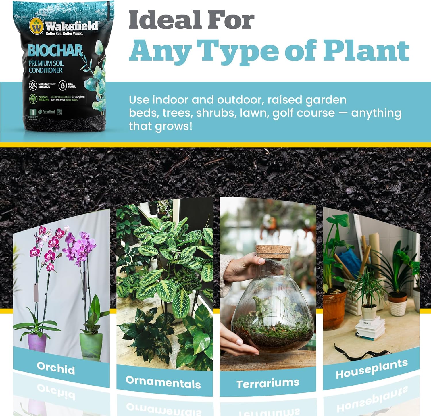 Wakefield Premium Organic Biochar Soil Amendment & Soil Conditioner – Certified Carbon-Negative Nutrient-Locking, Water-Efficient Bio Char for Plants & Lawns - Soil Amendments for Lawn - 1 CF