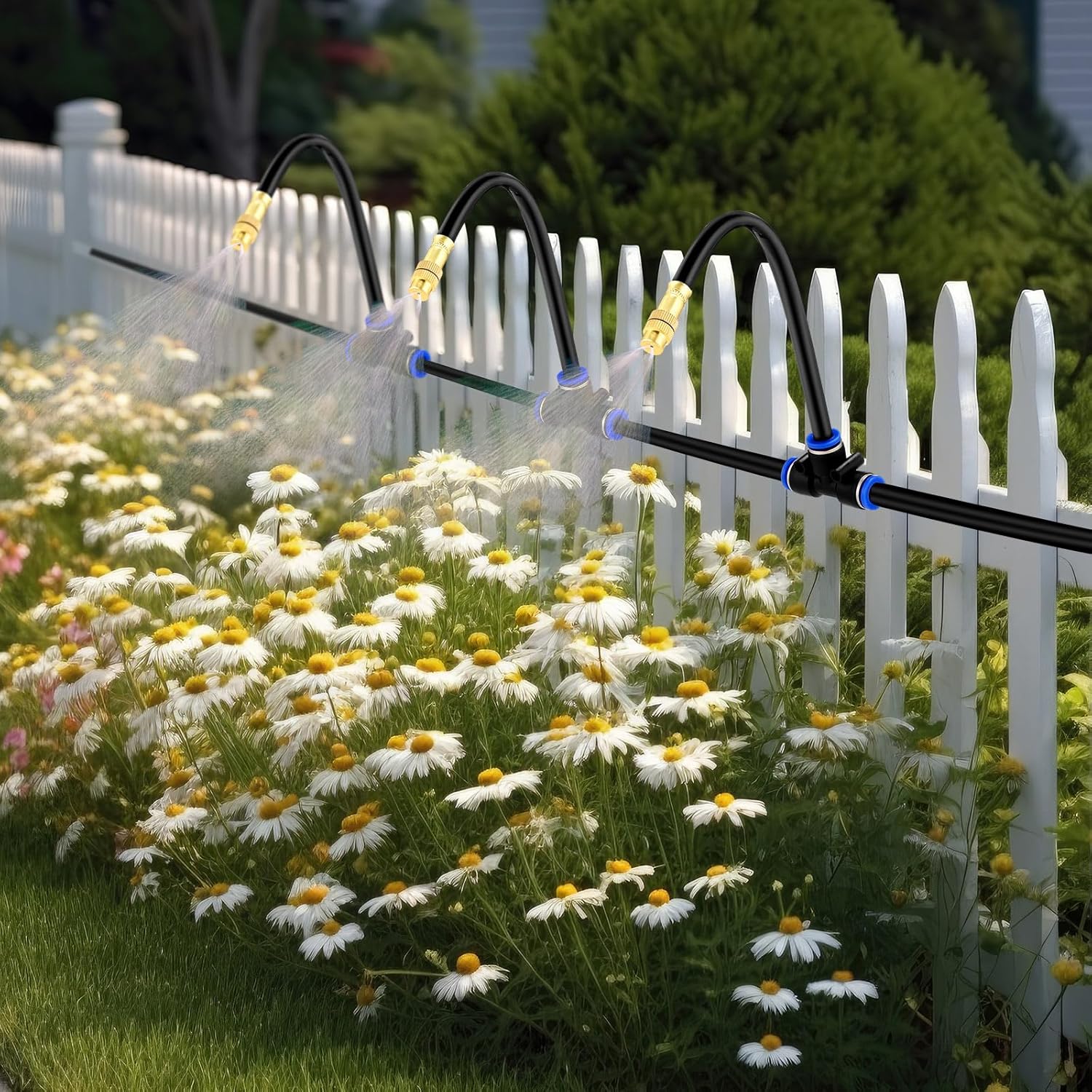 - Easy and Hassle Free Installation: installing the water hose sprayer nozzle tee is a breeze; With an intuitive design, the tube can be effortlessly inserted or removed by pressing the blue button; Plus, you can adjust the water quantity with a simple twist of the nozzle, meeting specific cooling requirements