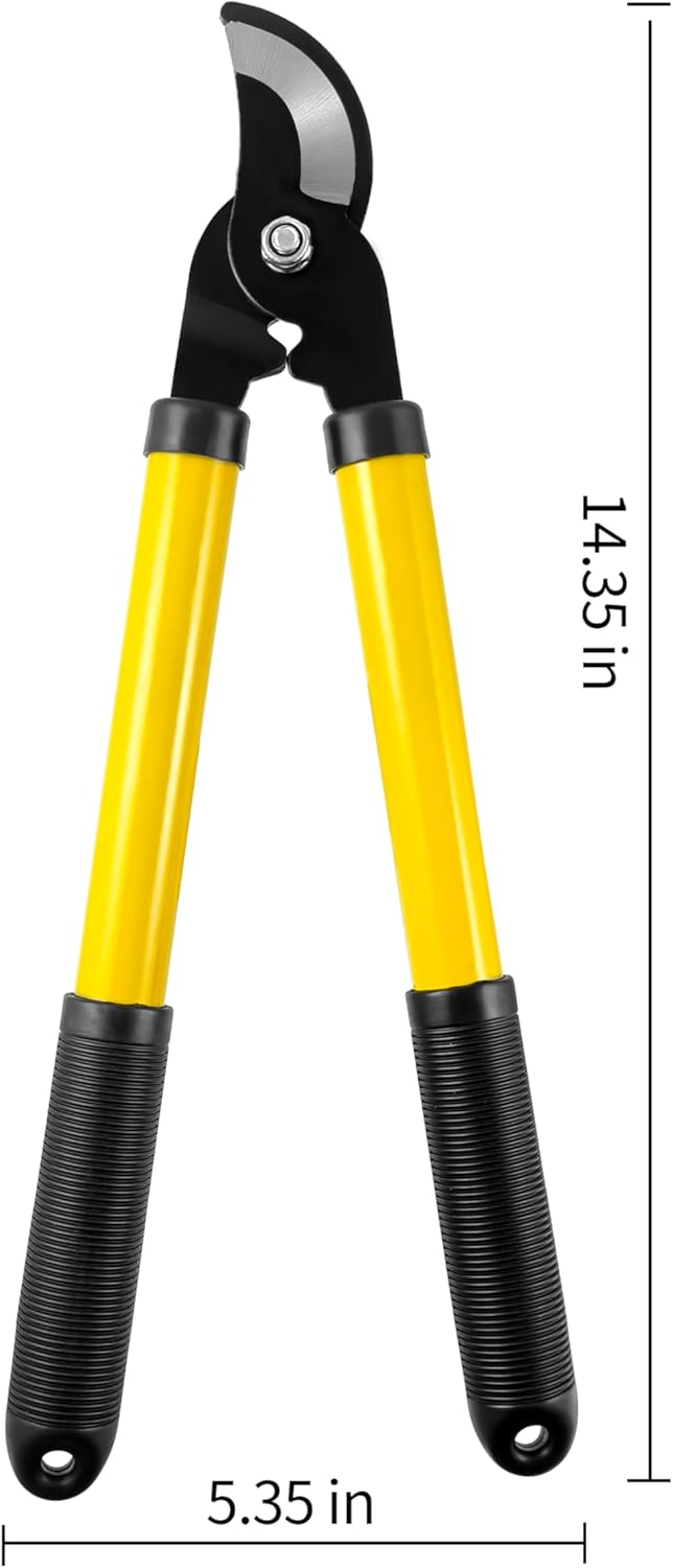 - ๐ทPOWERFUL 14-INCH LOPPER โ Effortless Cutting & Precision โ Engineered for clean, smooth cuts, our razor-sharp, hardened steel lopper blades slice through thick branches and tough stems with ease. The long ergonomic handles provide extra leverage to reduce effort and hand strain, making pruning effortless.