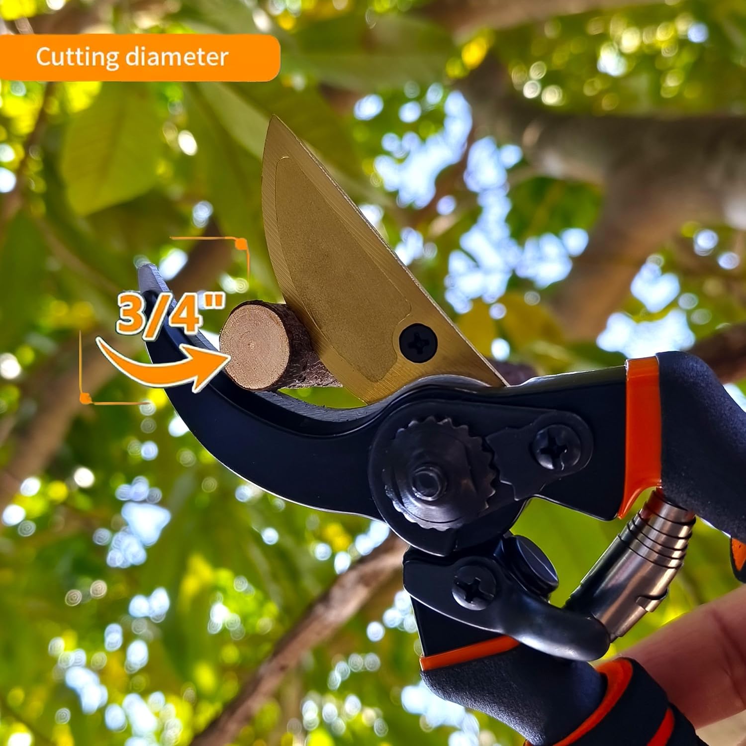 - ๐ท8.5" Professional Premium SK5 Steel with Titanium Bypass Pruning Shears-Ultra-sharp And Durable,Ergonomically Designed,Versatility Pruners For Gardening,Safe And Easy To Handle