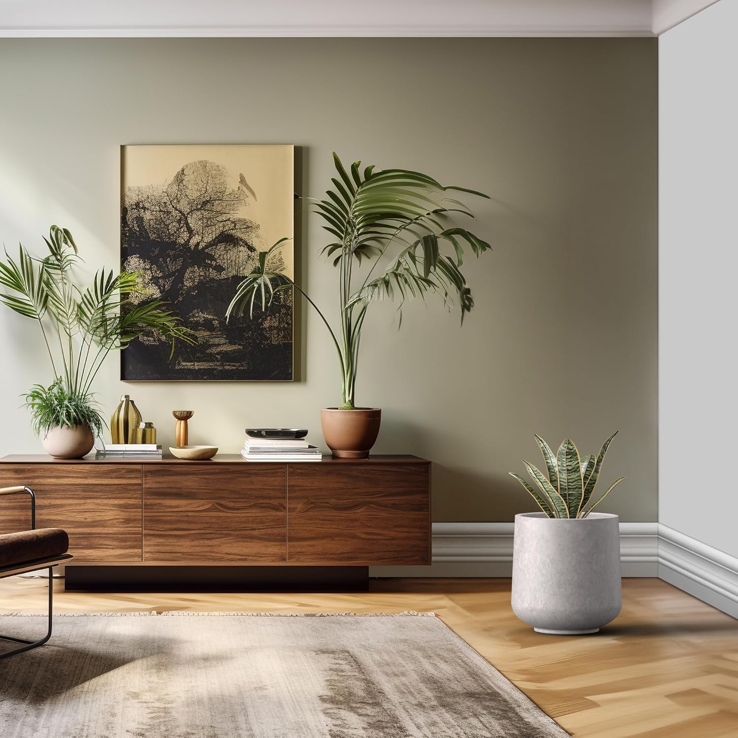 Kante 15.3" Dia Round Concrete Planter, Outdoor Indoor Large Plant Pots Containers with Drainage Hole and Rubber Plug for Home Garden Patio, Light Gray